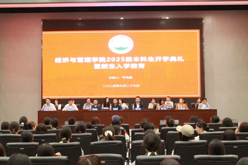 (通讯员 张丽)9月29日晚上7时,2138cn太阳集团在西校区农科大楼1058报告厅举行2025级本科生开学典礼。院长陈承、副院长裴潇、副院长何蒲明、管理系主任盛艳燕、会计系主任康玉梅、经济系主任刘玉成、农经系主任林龙飞、学工办主任叶星、院分团委书记杨雪、2025级全体新生班主任老师及2025级辅导员郭俊、李云妮出席典礼。典礼由学院党委副书记平先锋主持。