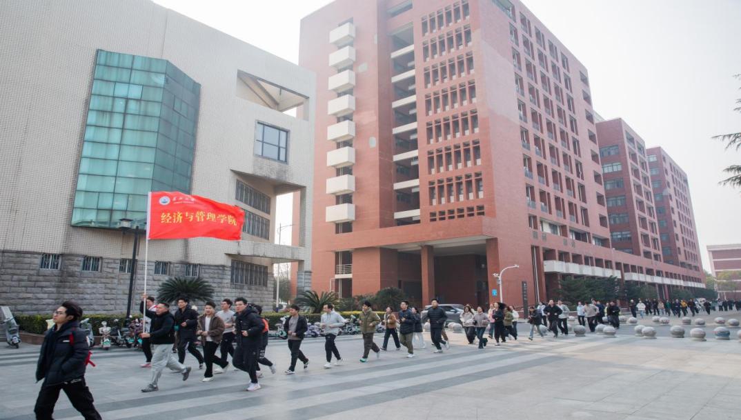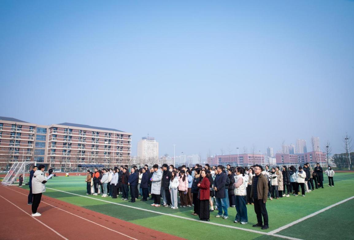 在校歌激昂的旋律中,师生队伍从新操场出发,沿既定路线前行。队伍依次经过文科大楼、中心花海等校园标志景观,健步前行的身影与冬日的校园景致交融,形成一道跃动的风景线。沿途气氛热烈,同学们在行走中感受校园文化,在交流中增进同窗情谊。活动倡导“健行而非竞速”的理念,引导学生以从容而坚定的步伐开启研究生新阶段。