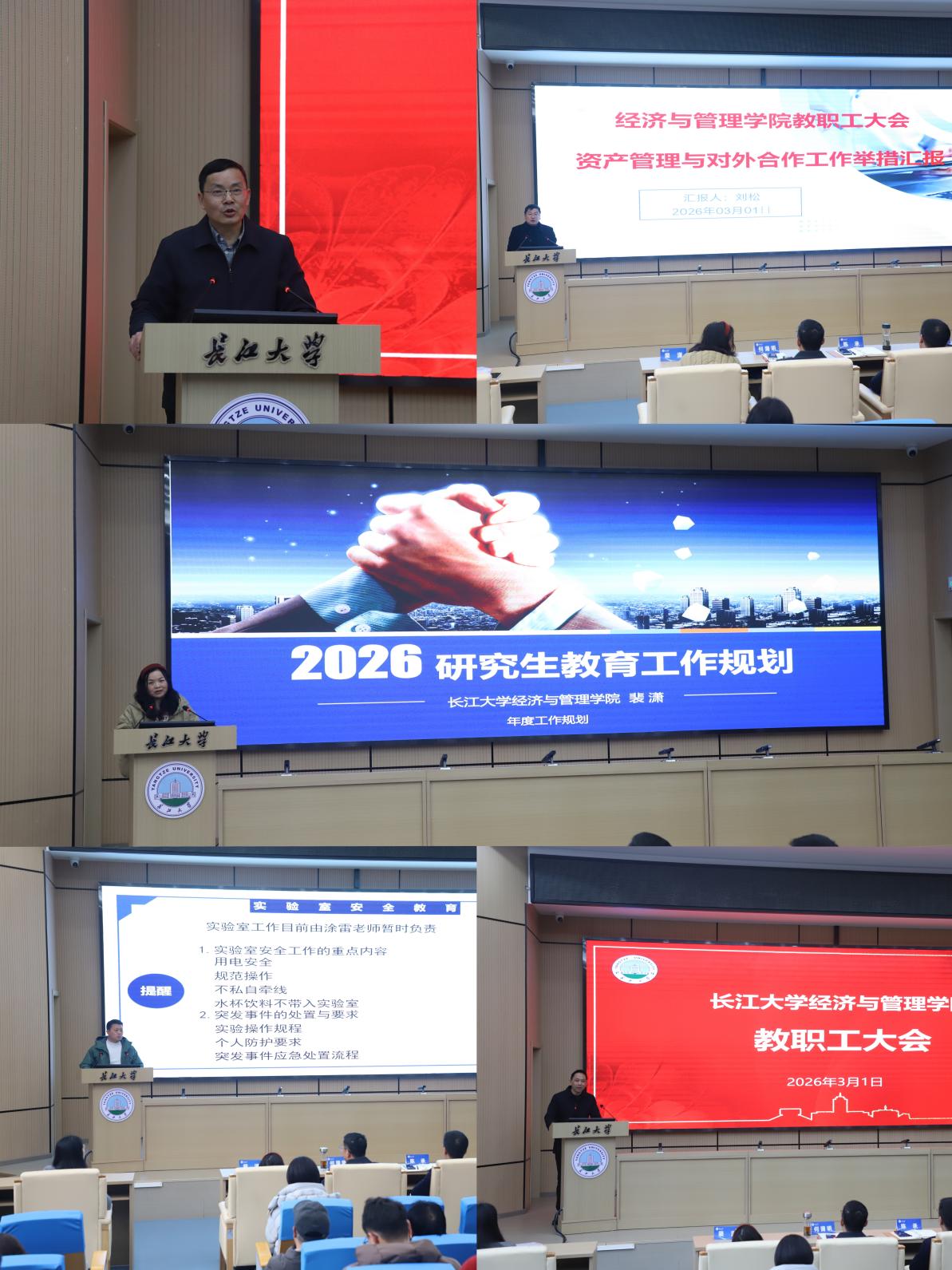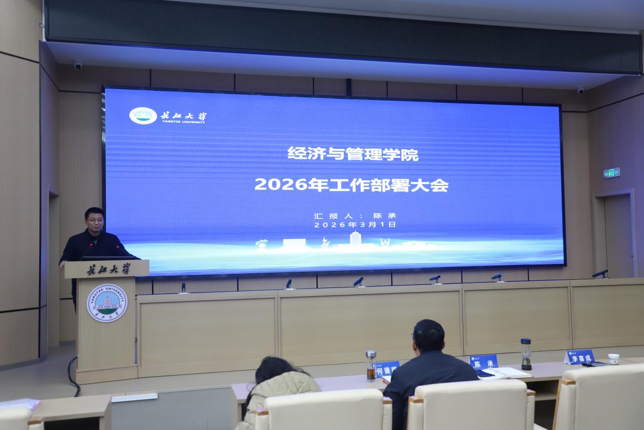 随后,各分管院领导围绕2026年重点工作进行部署。副院长何蒲明阐述了年度科研工作量化目标,涵盖国家级项目、咨询报告、高水平论文及横向课题等方面;副院长裴潇剖析了研究生培养环节存在的不足,提出以“揭榜挂帅”推动案例入库、高水平论文发表及导师指导能力提升;副院长刘松汇报了资产管理与对外合作工作,明确了办公空间优化、教学环境升级、推进中外合作办学及国际化师资队伍建设等具体任务;党委副书记平先锋围绕学生、工会、纪检及招生工作,明确了四级通过率、学科竞赛、考研就业等高质量发展目标,并重点强调要守住学生返校安全底线。