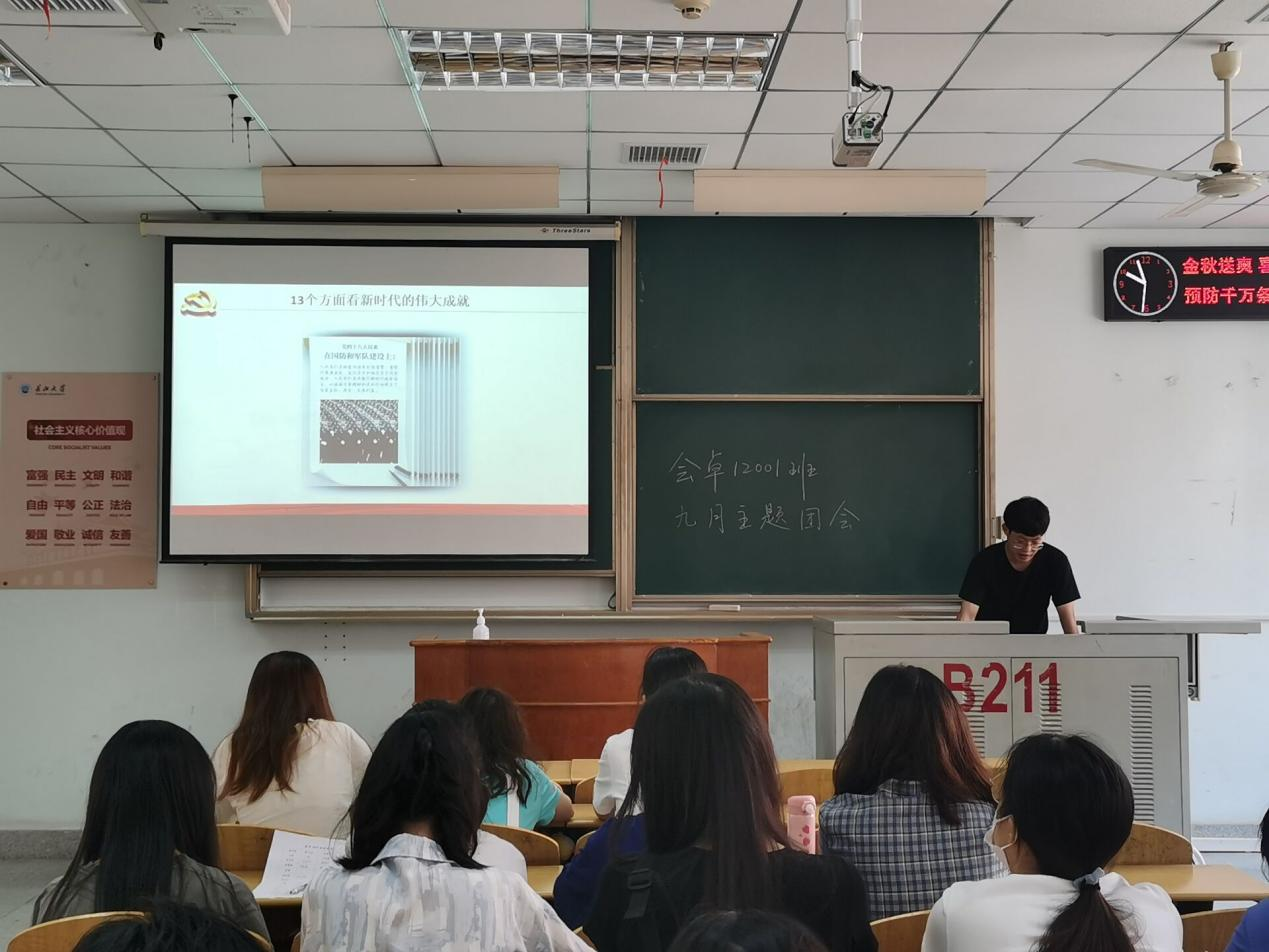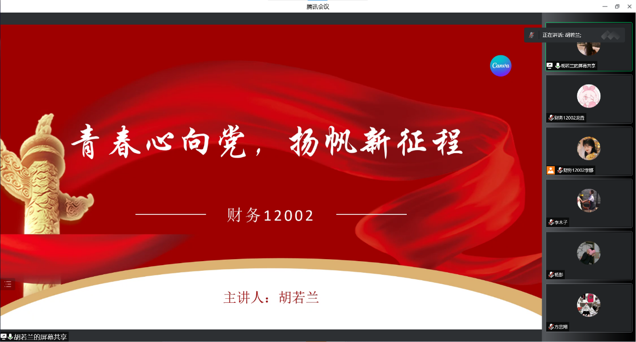 在理解“新时代的伟大成就”这一专题时,财务12002班团支部通过视频了解了新时代的伟大成就,团员们对党在新时代所付出的努力和经历的磨难有了更深刻的认识,也让大家坚定高举爱国主义旗帜,用青春汗水灌注成功之花。