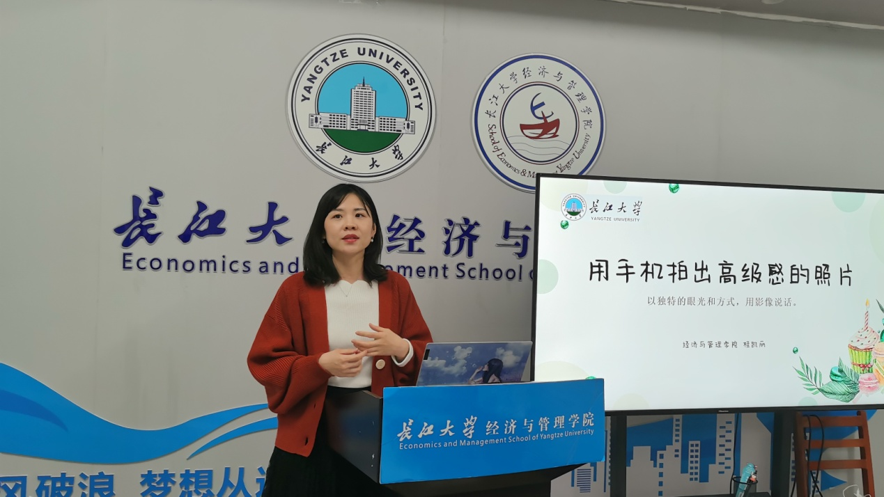 桂凯丽老师对学生记者进行学生记者专项培训,从新闻摄影与新闻写作两方面进行阐述。她针对学生记者的新闻稿进行详细讲评,其内容详实丰富、讲述由浅入深,提高了与会学生记者的专业素养,为学生记者今后的工作打下良好基础。会议最后,桂凯丽老师对全体学生记者提出期望,希望学生记者努力提升自己、共同推动“经管之声”学生记者团越办越好。