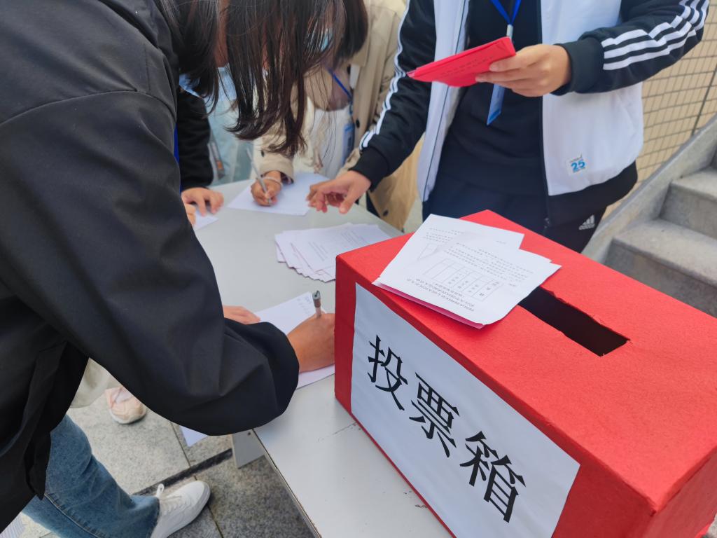 8时30分选举正式开始,郭俊老师和李云妮老师宣读了候选人名单基本情况 ,介绍了有关选举事项说明。之后投票正式开始,同学们将选民证交给工作人员仔细核验后,领取选票并认真填写。在工作人员的指引下,选民们在投票箱前郑重投下自己的一票。