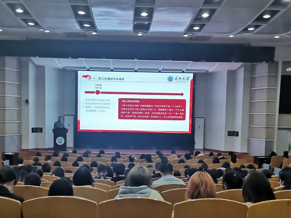 (通讯员:谭学淼 胡西) 2021年10月21日晚上7:00,2138cn太阳集团在东校区12教405报告厅开展以“实现第二百年奋斗目标的政治宣言与行动指南”为题的学习习近平总书记“七一”重要讲话精神理论宣讲报告会。经济与管理学院娄君庭老师主持会议,马克思主义学院陈松林教授担任主讲人,学院18级、19级、20级的入党积极分子、发展对象以及各班团支部副书记参加此次会议。
