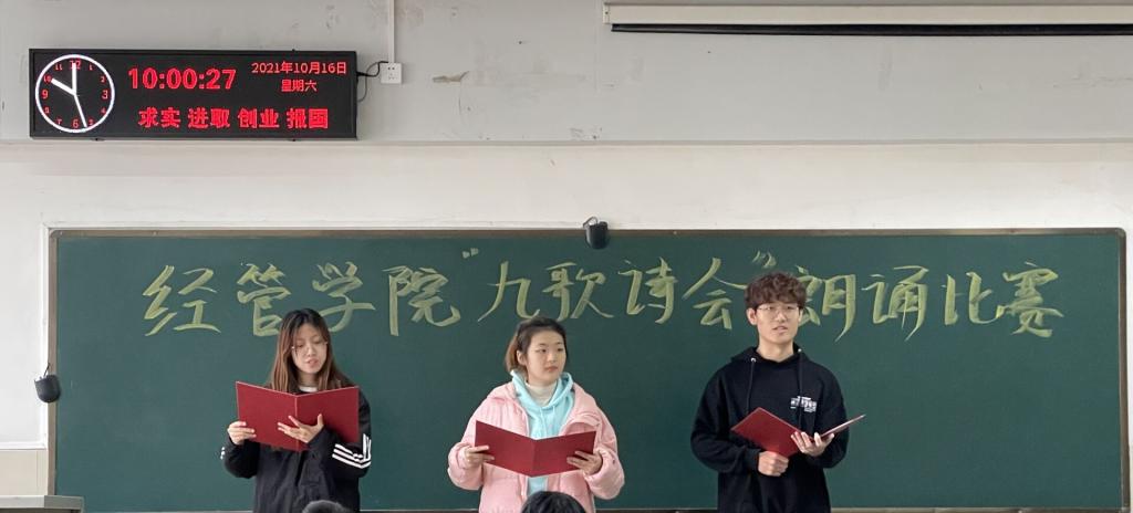 本次活动比赛分为诗歌征文和诗歌朗诵两部分,朗诵经典和原创诗歌作品。经管学子积极报名参加比赛。初赛现场,选手们高度重视,皆有备而来。随着背景音乐的响起,选手们以铿锵有力的气势,自信大方的展示了自己的实力,表达了对祖国日新月异向好发展变化的骄傲之情,赢得了在场评委和同学们的阵阵掌声。虽为初赛,但比赛气氛活跃,无不彰显出我院青年学子的殷殷爱国之情。同学们感情丰富、富有创意,准确把握作品内涵与格调,把诗词的意境表现得淋漓尽致,令人意犹未尽。随着最后一首背景音乐的暂停,初赛接近尾声。至此经管学院“诗赞百年史,歌颂新时代”朗诵大赛初赛圆满结束。