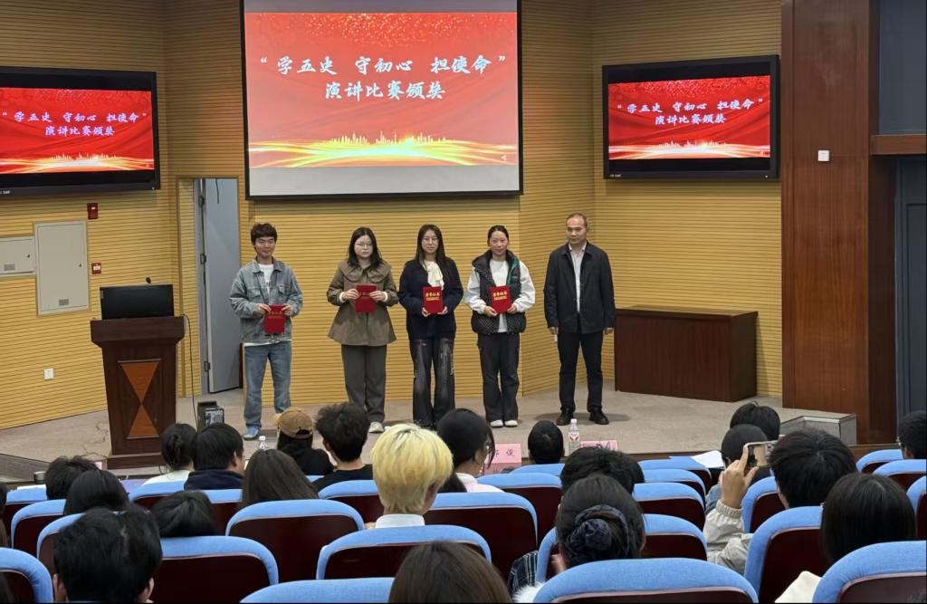 (通讯员 娄君庭 薛诗宸/文 张俊翔/摄)为深化“五史”学习教育,激发广大学生的爱国热情,2025年10月28日,2138cn太阳集团在2138cn太阳集团西校区农科大楼1056报告厅举办“学五史,守初心,担使命”主题演讲比赛。学生干部薛诗宸主持活动,辅导员娄君庭、郭俊以及学生干部张俊翔、樊佳慧、冉佳佳共同担任评委,学院2025级本科生代表组成大众评审团参与现场评议。