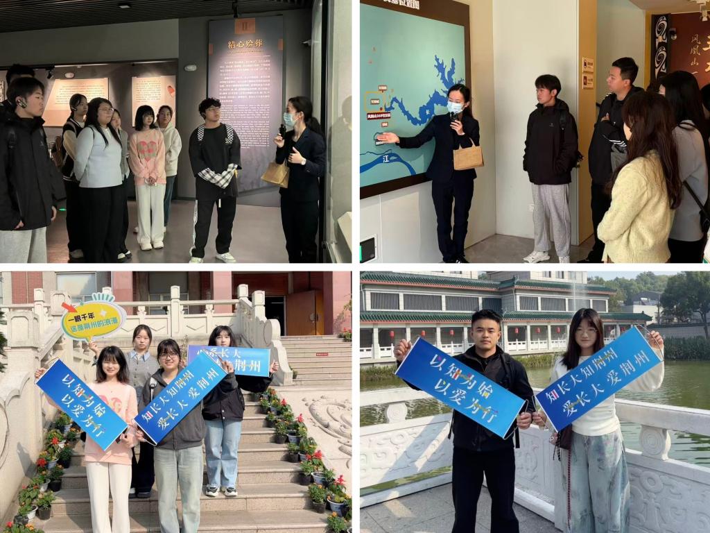 在感悟传统文化中厚植荆州情怀。在荆州博物馆,同学们先后参观了《吉金耀彩——荆州出土铜器展》《五大夫遂——凤凰山168号汉墓展》《丹漆神韵——楚秦汉漆器精品展》等8个具有浓郁地方特色的基本陈列,系统了解了荆州历史文化和文物精品。参观过程中,同学们被“越王剑”的传奇所吸引,那剑身背后隐藏的种种可能性,引人遐想,让同学们不禁沉醉于历史那深邃而神秘的魅力。看到五大夫遂栩栩如生的身体时,两千多年前的智慧之光赫然显现,那高超的医药与防腐技艺,让五大夫遂的躯体得以跨越千年而不朽。通过这次参观,同学们深刻体会到了荆州作为历史文化名城的独特魅力和深厚底蕴。他们对荆州的情怀,在每一次凝视与沉思中悄然生长,愈发根深叶茂,这份情怀将激励着他们为荆州这片古老的土地增添新的光彩。
