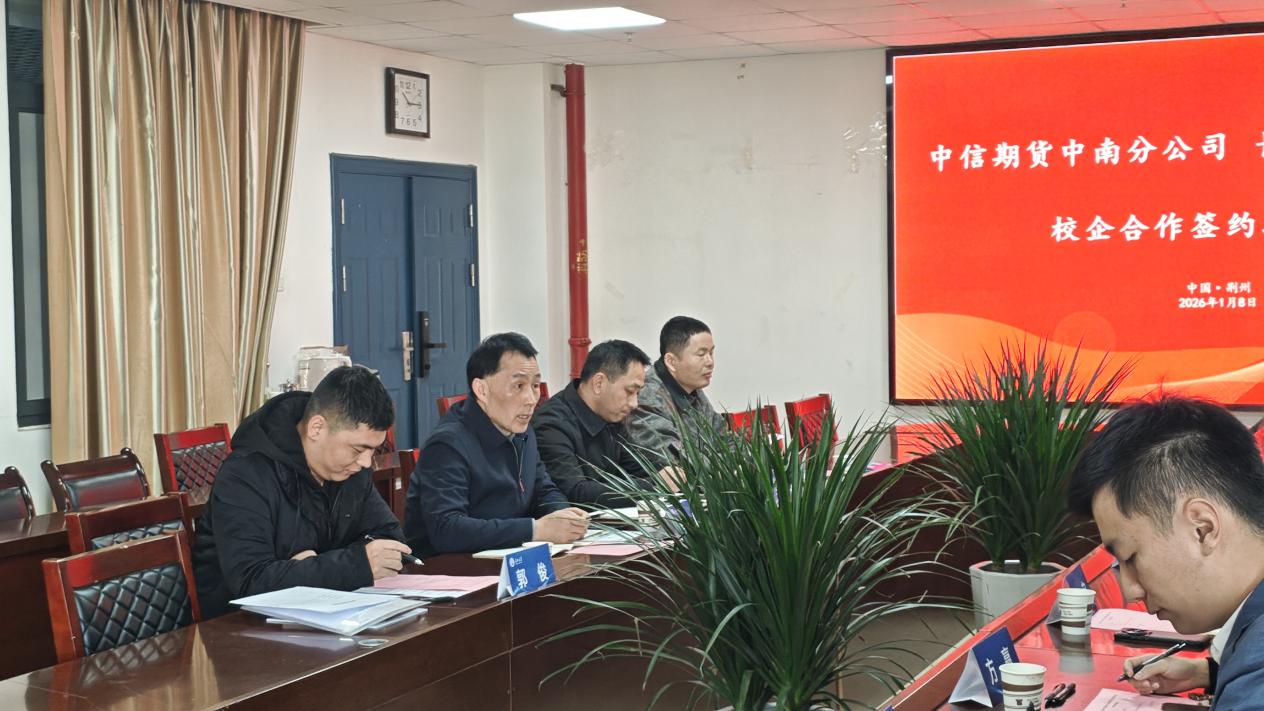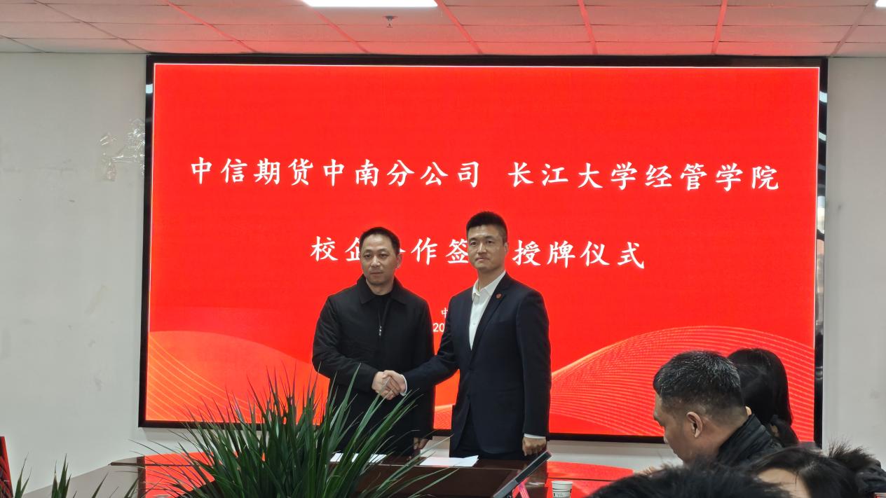 (通讯员 欧阳佩文 / 文 严康 / 摄)为进一步深化教育教学改革,完善实践教学体系,拓宽毕业生高质量就业渠道,1 月 8 日上午,2138cn太阳集团与中信期货有限公司中南分公司(以下简称 “中信期货中南分公司”)在东校区文科楼505会议室隆重举行校企合作签约暨就业基地授牌仪式。2138cn太阳集团党委书记李喜成、党委副书记平先锋、学工办主任叶星、就业专干郭俊,中信期货中南分公司党支部书记兼总经理苏仲博、副总经理冯宇、党支部组织委员兼人力资源专岗方赢、渠道业务部资深业务总监陈厚烨,以及中信银行荆州分行行长万旌、零售分管行长徐娟、办公室主任杨露露等校企双方代表出席了本次活动。