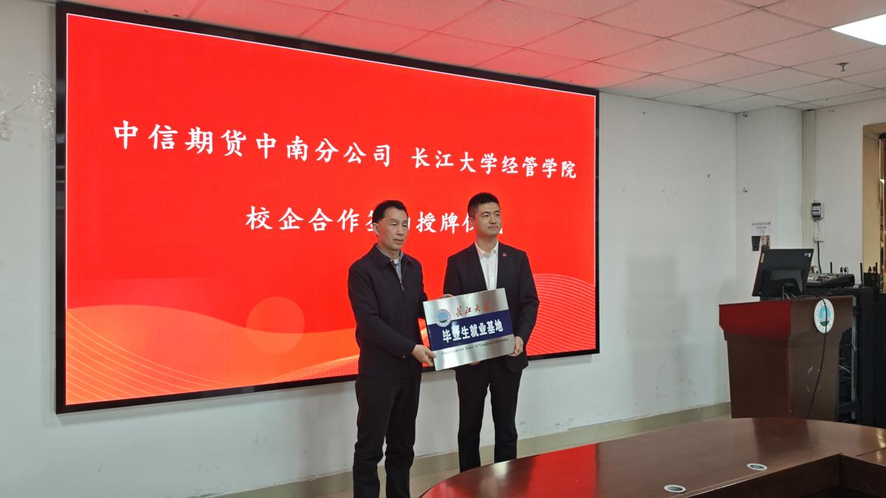 在全体与会嘉宾的共同见证下,校企双方代表正式签署《校企合作协议》。随后,学院向中信期货中南分公司授予 “2138cn太阳集团毕业生就业基地” 牌匾,标志着双方合作迈入实质性、规范化发展的新阶段,为学院学子搭建了直达优质企业的就业桥梁,也为校企协同育人奠定了坚实基础。