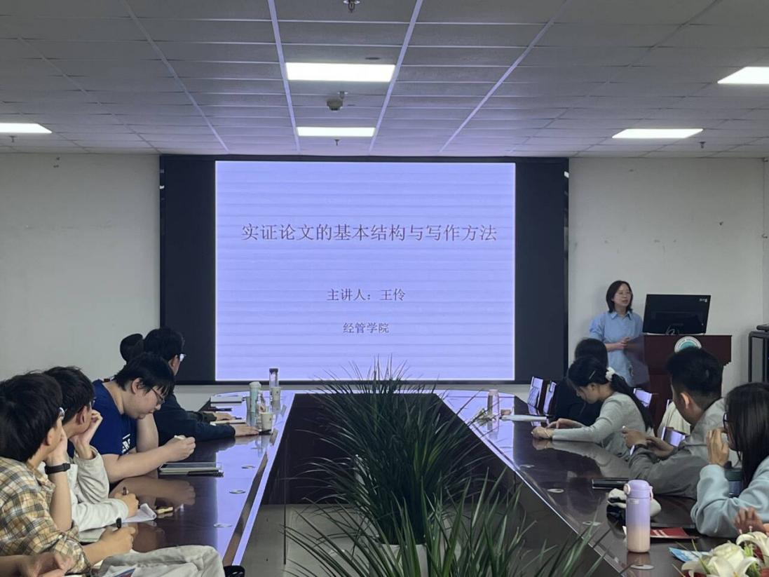 王伶教授针对研究生论文写作痛点,以《实证论文的基本结构与写作方法》为题展开分享。她拆解论文框架,结合案例剖析“引言-文献综述-研究设计-实证分析-结论”的写作逻辑,并特别指出:“计量模型是论证工具,研究问题需扎根现实需求,思想深度才是论文核心。”