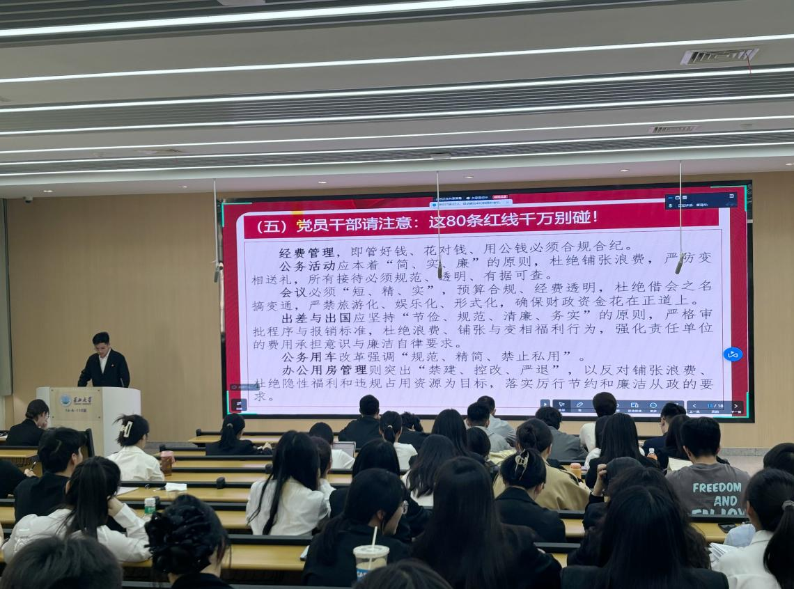 主题研讨阶段,全体党员围绕“在日常生活中,如何在学习和生活中严守纪律底线”等议题展开讨论。刘露同志提到,作为一名研究生,在学习过程中要保证学术态度端正,在论文撰写过程中及时标注数据来源,以实际行动担当青年责任。其他同志依次发言。通过深入研讨,大家将理论学习成果转化为具体行动建议,展现了支部党员的集体智慧和责任担当。
