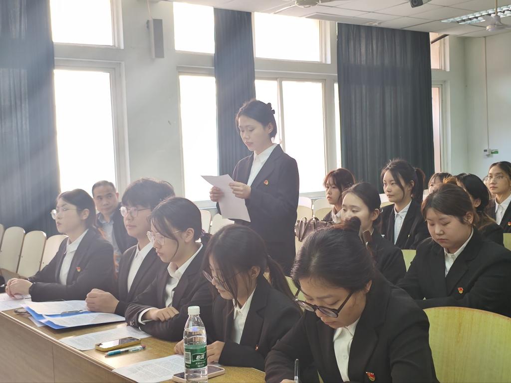 在党员发言环节,黄子贝同志表示要深入学习全会精神,将制度建设和治理能力现代化要求融入学习实践,践行党员责任。樊佳慧同志表示,要将党的二十届四中全会精神融入专业学习,将学习成果转化为服务高质量发展的专业实践,立足财务岗位担当作为。